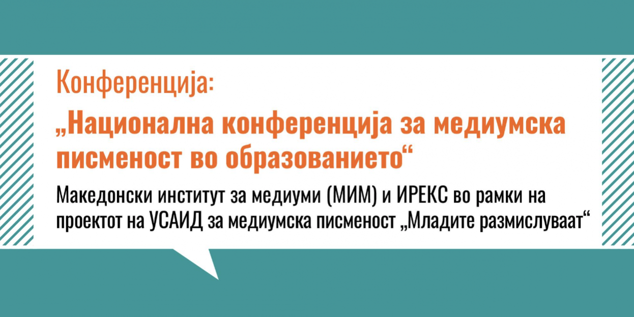 На 30 октомври со почеток во 10:00 часот во хотелот Лимак ќе се одржи Национална конференција за медиумска писменост во образованието. Конференцијата е во организација на Македонскиот институт за медиуми и ИРЕКС во рамки на проектот на УСАИД за медиумска писменост „Младите размислуваат“.