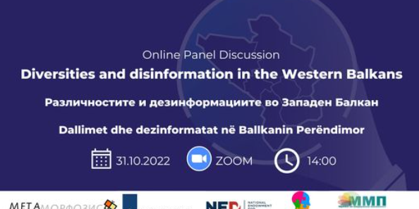 Фондацијата за интернет и општество „Метаморфозис“ Ве поканува на панел-дискусијата „Различностите и дезинформациите во Западен Балкан“, која ќе се одржи на 31 окотмври 2022 година во Скопје, со почеток во 14:00 часот, на платформата за видео комуникација Zoom.