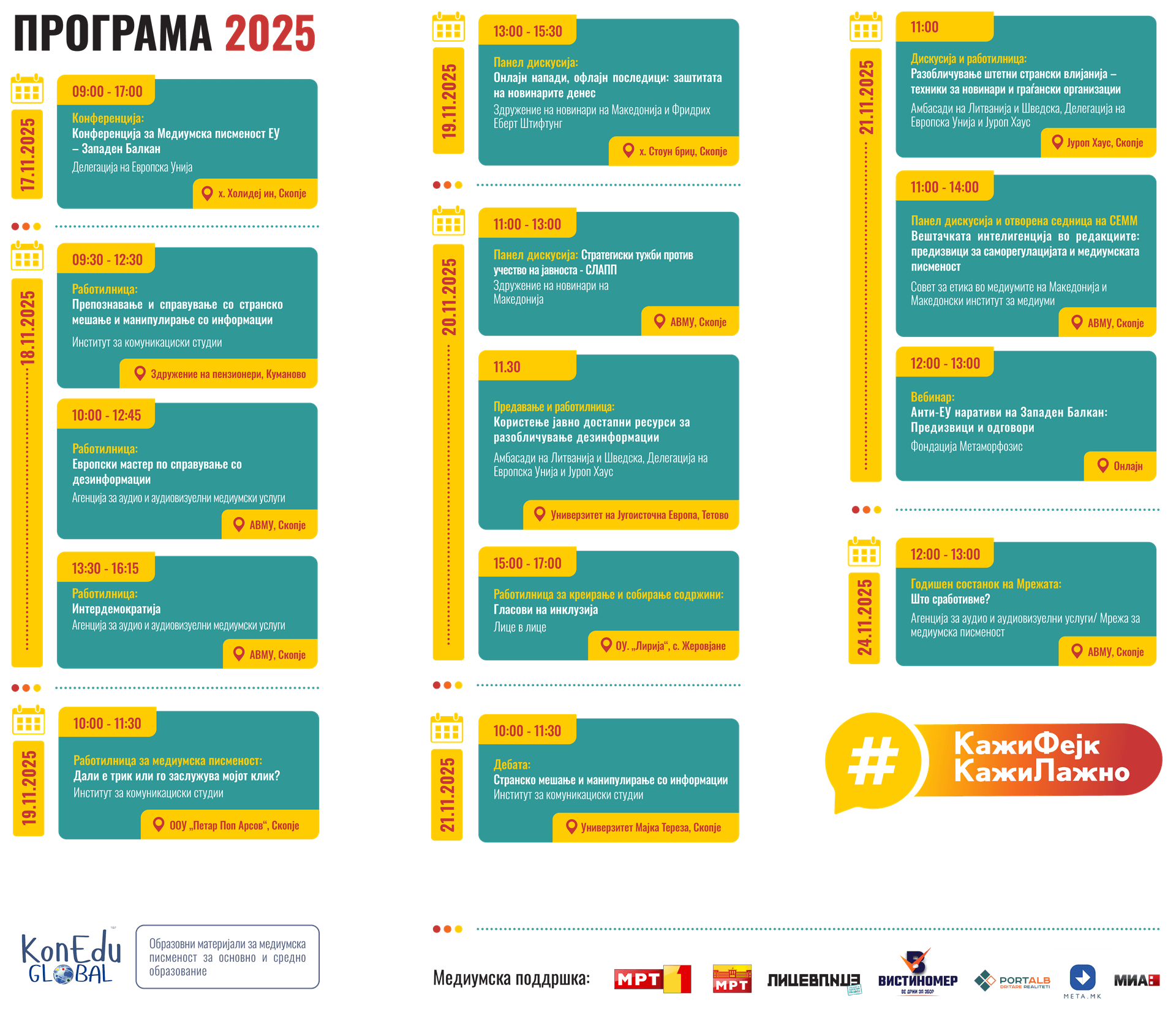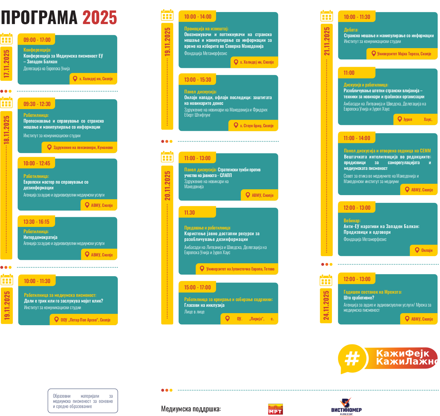 Агенда: Квиз: Препознавање на дезинформации како супермоќ, дискусија за дезинформации: Провери ги фактите и игра за проверка на факти: