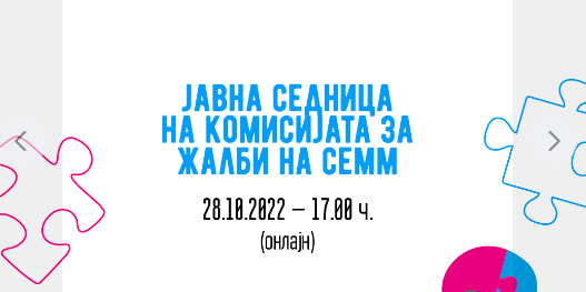 Во рамките на ДМП 2022, на 28.10.2022 г. беше одржана јавна седница на Комисијата за жалби при Советот за етика во медиумите на Македонија, на која се разгледуваа сите пристигнати жалби поврзани со кршење на професионалните и етичките стандарди во пишаните (печат и новински агенции), електронските (ТВ и радио) и во интернет медиумите во Македонија. Седницата беше одржана онлајн и отворена за јавноста, со цел да биде одговорно, транспарентно, донесувањето на одлуките во рамки на Комисијата за жалби. Краток пресек од овој настан, може да проследите во видеото подолу.